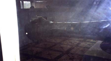The centrifuge making another revolution. I think Wally is in it at the time. Of course the glass distorts the view a great deal but you can still get an idea of what it is. |