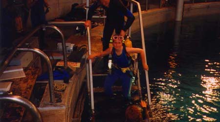 Only Jane, Brian, Paul and I dove. It took quite a while for the medical checks and to get our equipment but we finally entered the tank. The temperature of the water was about 80 degrees F. |