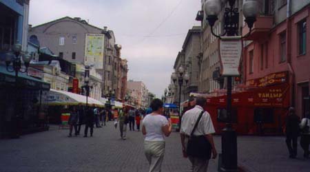 Looking down the Ulitsa Arbat, a pedestrian mall in the Arbatskaya section.