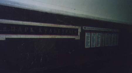Park Kultury station tracks. The sign is very ornate but it doesn't really show up well in the picture.