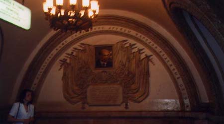 Kievskaya station near the hotel showing a mosaic of Lenin.